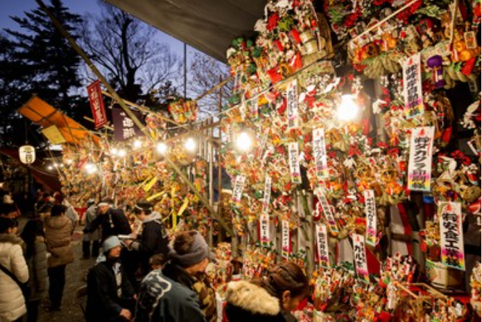 埼玉県で毎年12月に行なわれているおかめ市。名前こそ違いますが、東京都では酉の市として毎年11月頃に