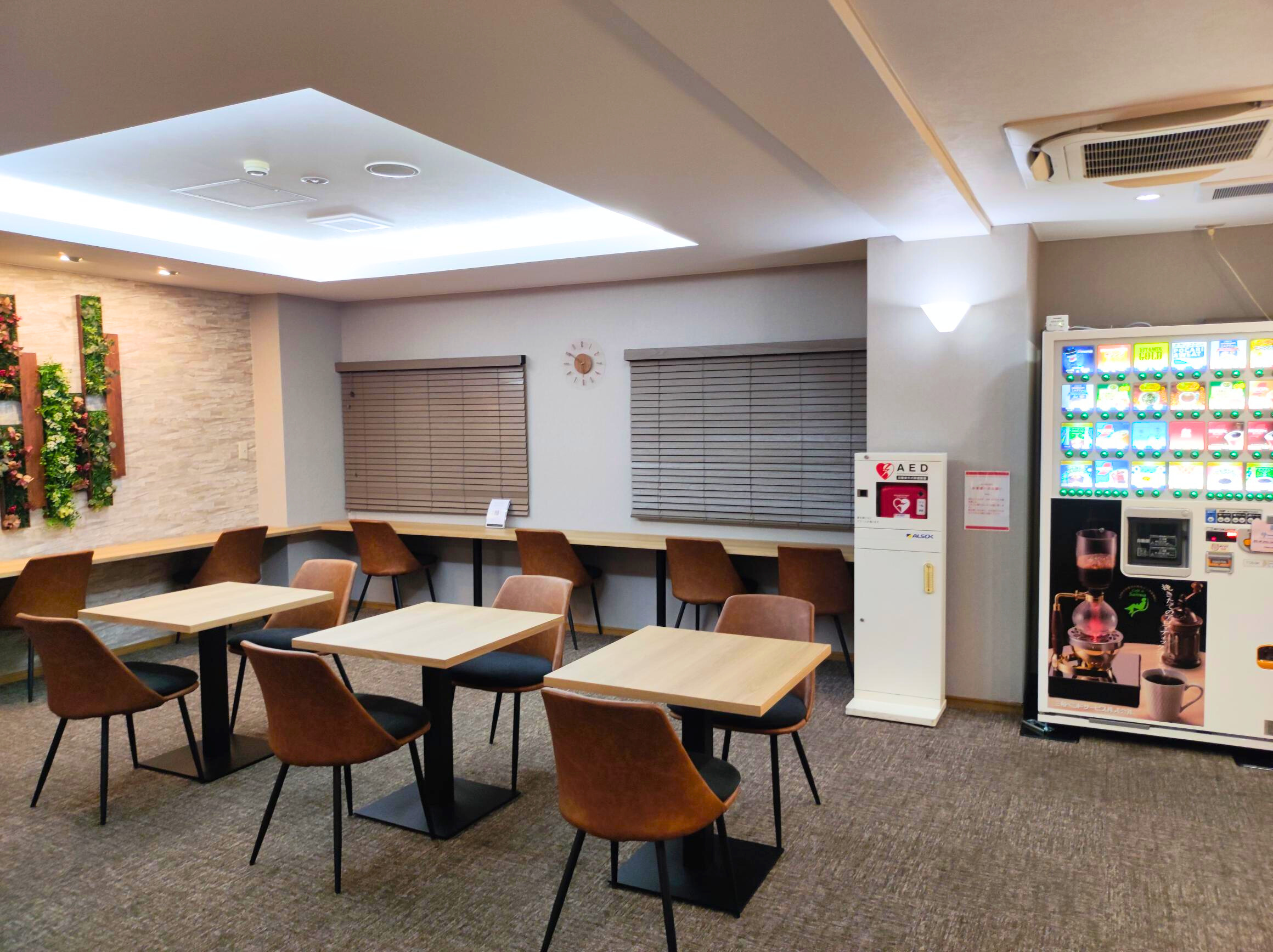下記時間帯において無料で清涼飲料水やスープ等をお楽しみいただける自動販売機をご用意しております。
